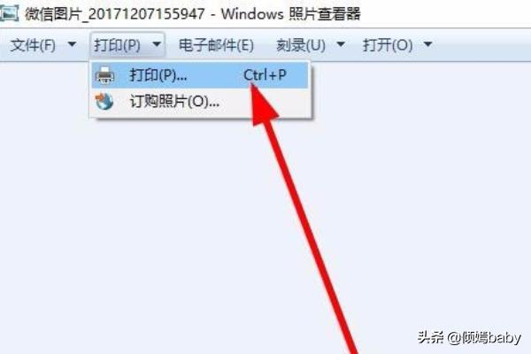 2、或者是直接双击打开图片,如图所示,点击上方的打印菜单。