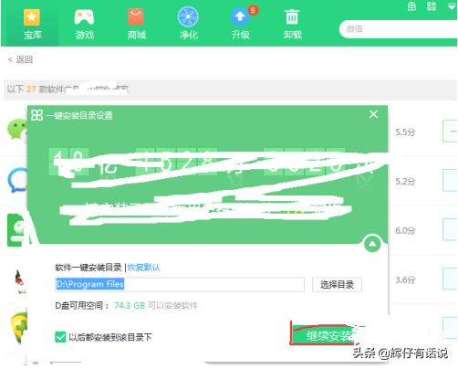 3、弹出一个安装软件的路径,一般默认为C盘,如果你要更改位置可以按选择路径选择。我们点击下方的“继续安装”按钮,如下图所示。