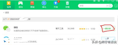 2、这时界面就出现了微信版本,我们点击微信版本后面的“下载”按钮,系统自动下载软件,等到“下载”按钮变成“一键安装”之后,我们点击“一键安装”按钮,如下图所示。