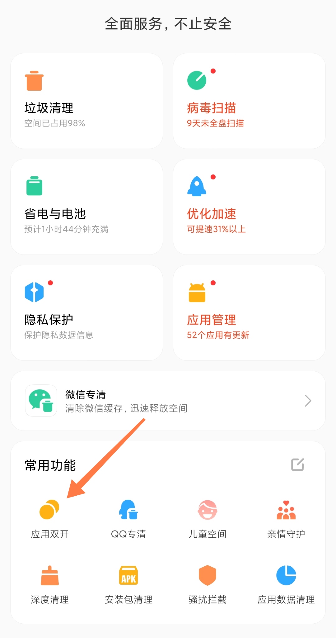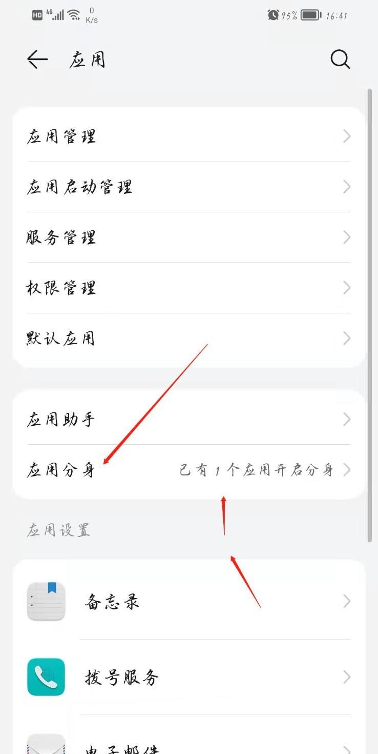 1、首先我们打开手机的设置页面,点击‘应用双开’。