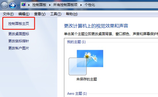 2.进入个性化页面,点击左侧的控制面板主页打开
