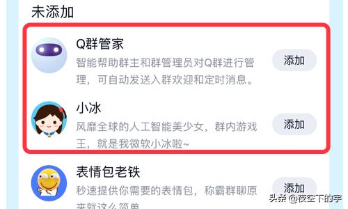 6、在接下来的界面,分别点击Q群管家和小冰右边的【添加】按钮。