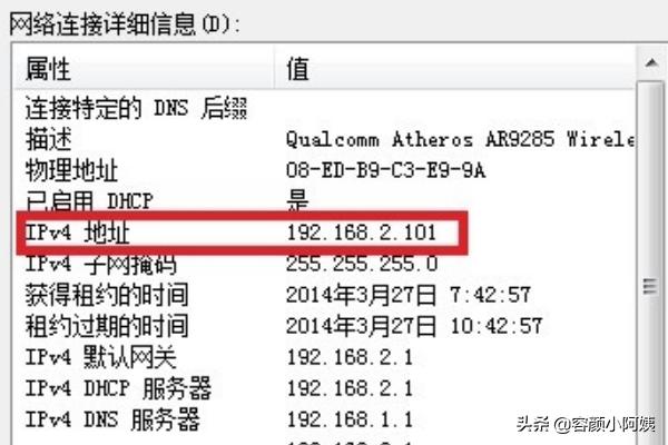 5、在详细列表里我们就可以看到网络的详细IP配置信息,如图