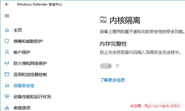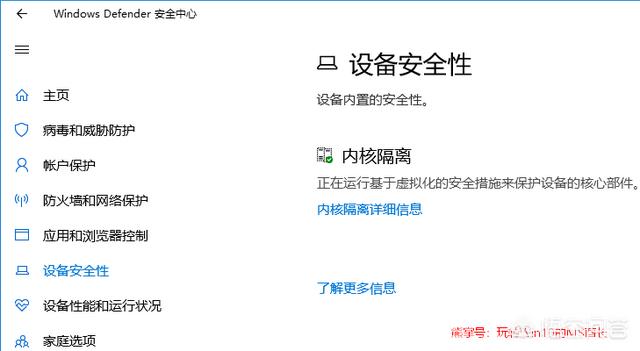 点击“内核隔离详细信息”打开“内核隔离”设置页面。如图: